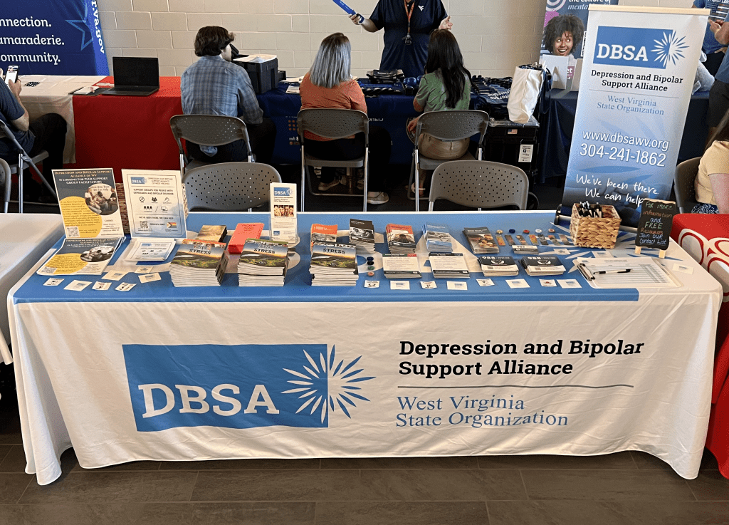 Members of the Morgantown community commemorated those who passed away from the September 11 attacks by gathering at the Morgantown Readiness Center (Morgantown Armory) on 9/11/25, alongside a resource fair showcasing many resources available to Veterans and First Responders. Staff members Stacie Weaver and Roger Neptune were there to promote DBSA WV alongside 60+ vendors and businesses. There, they met and spoke with many veterans, their families and loved ones.
